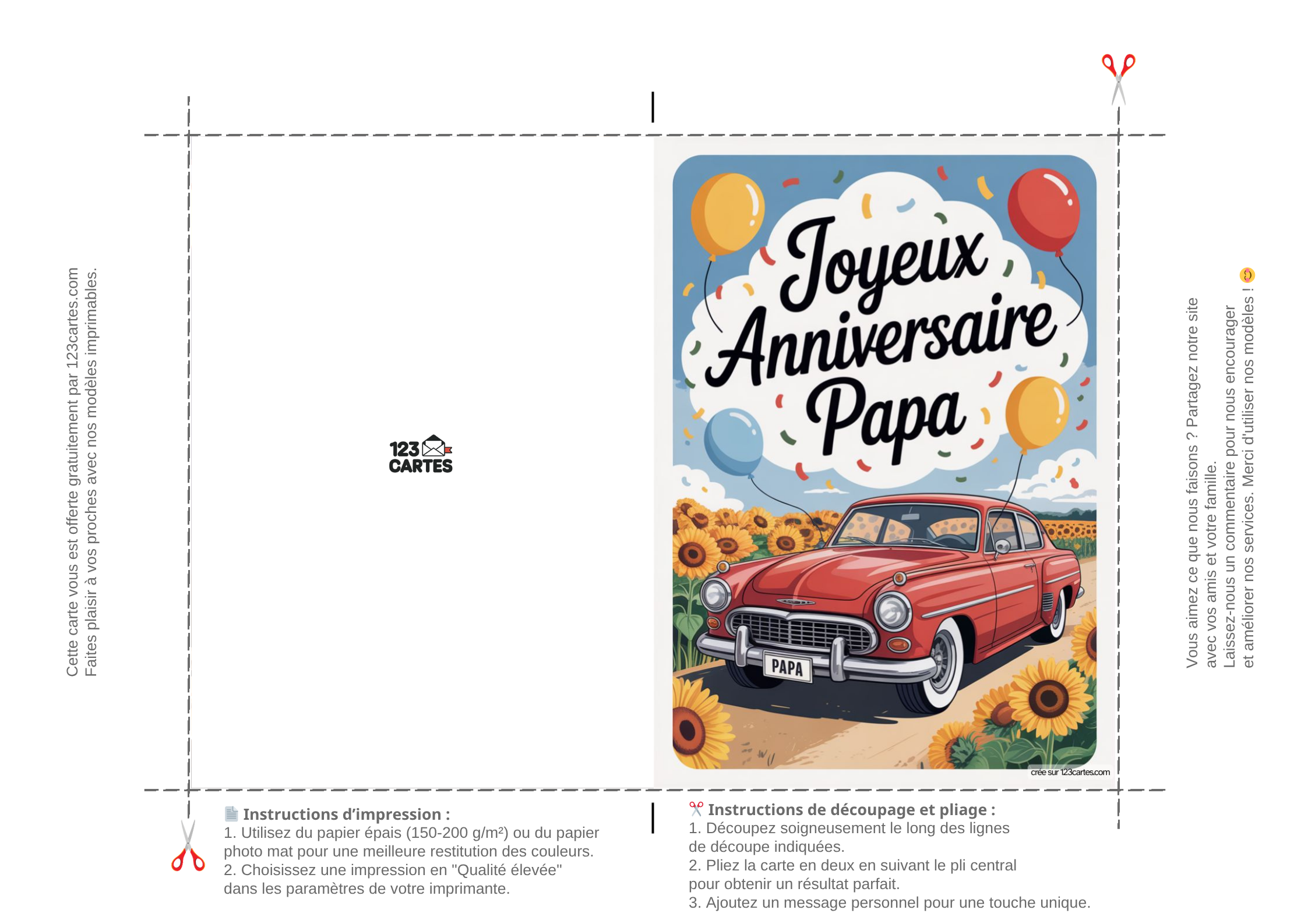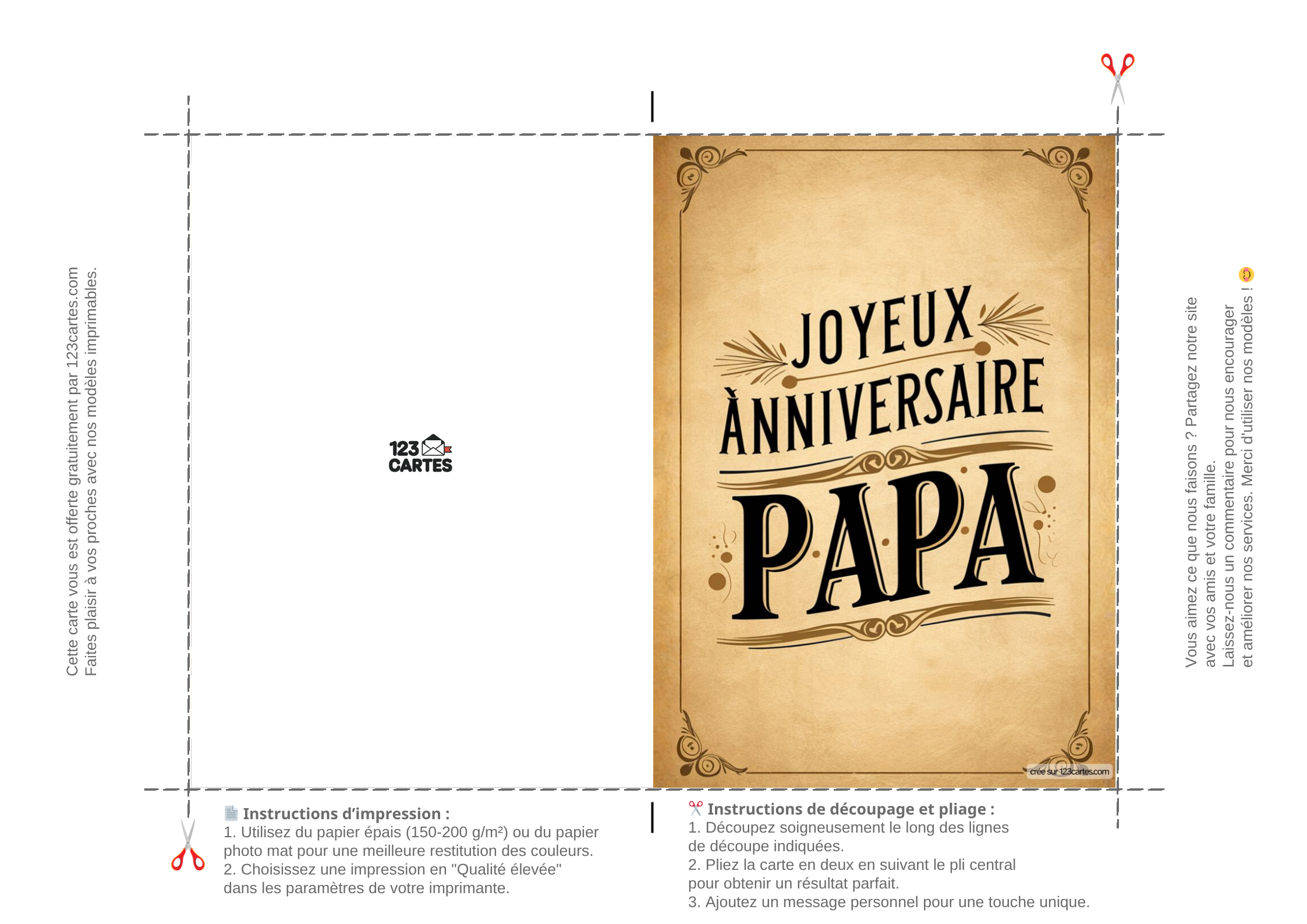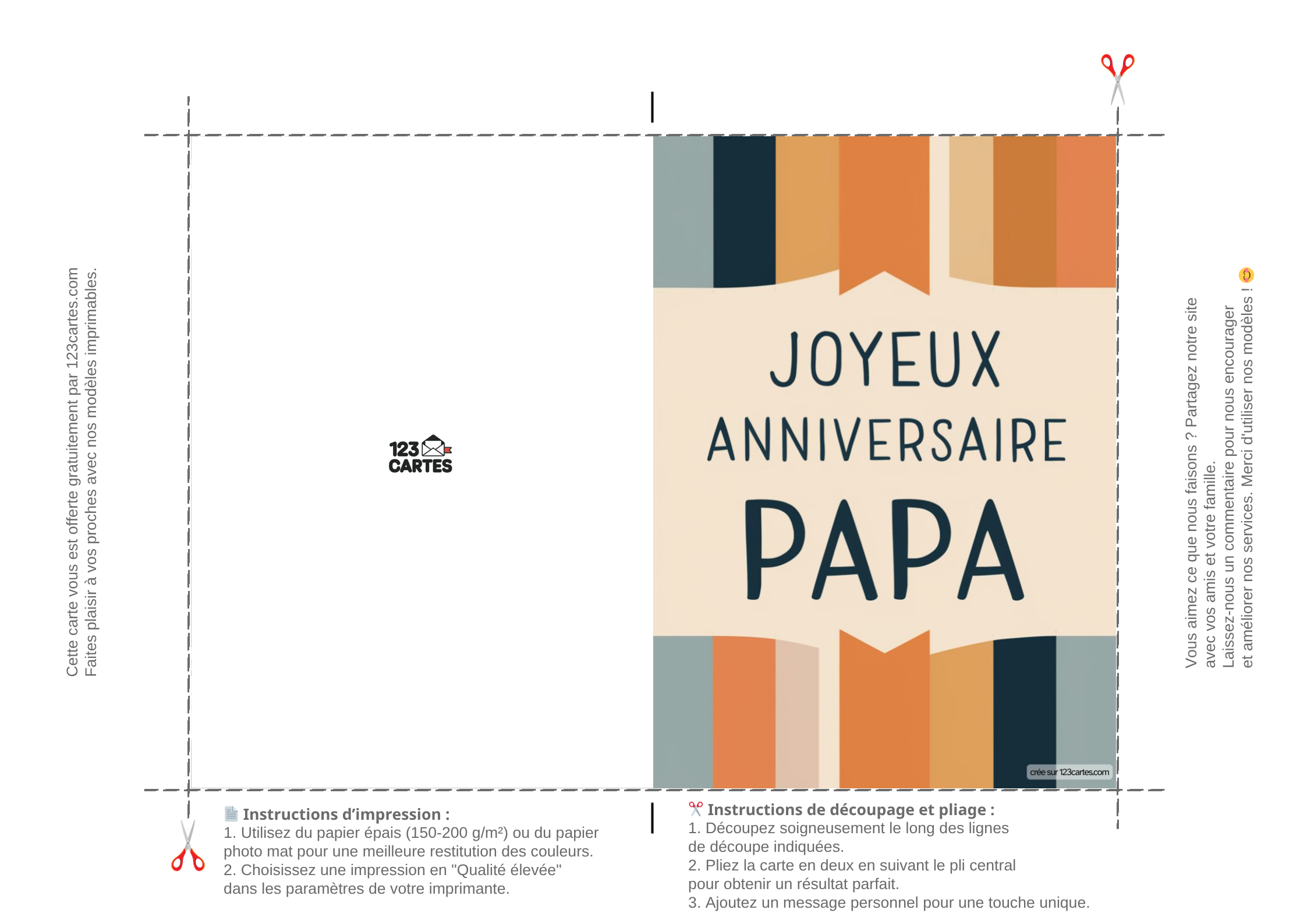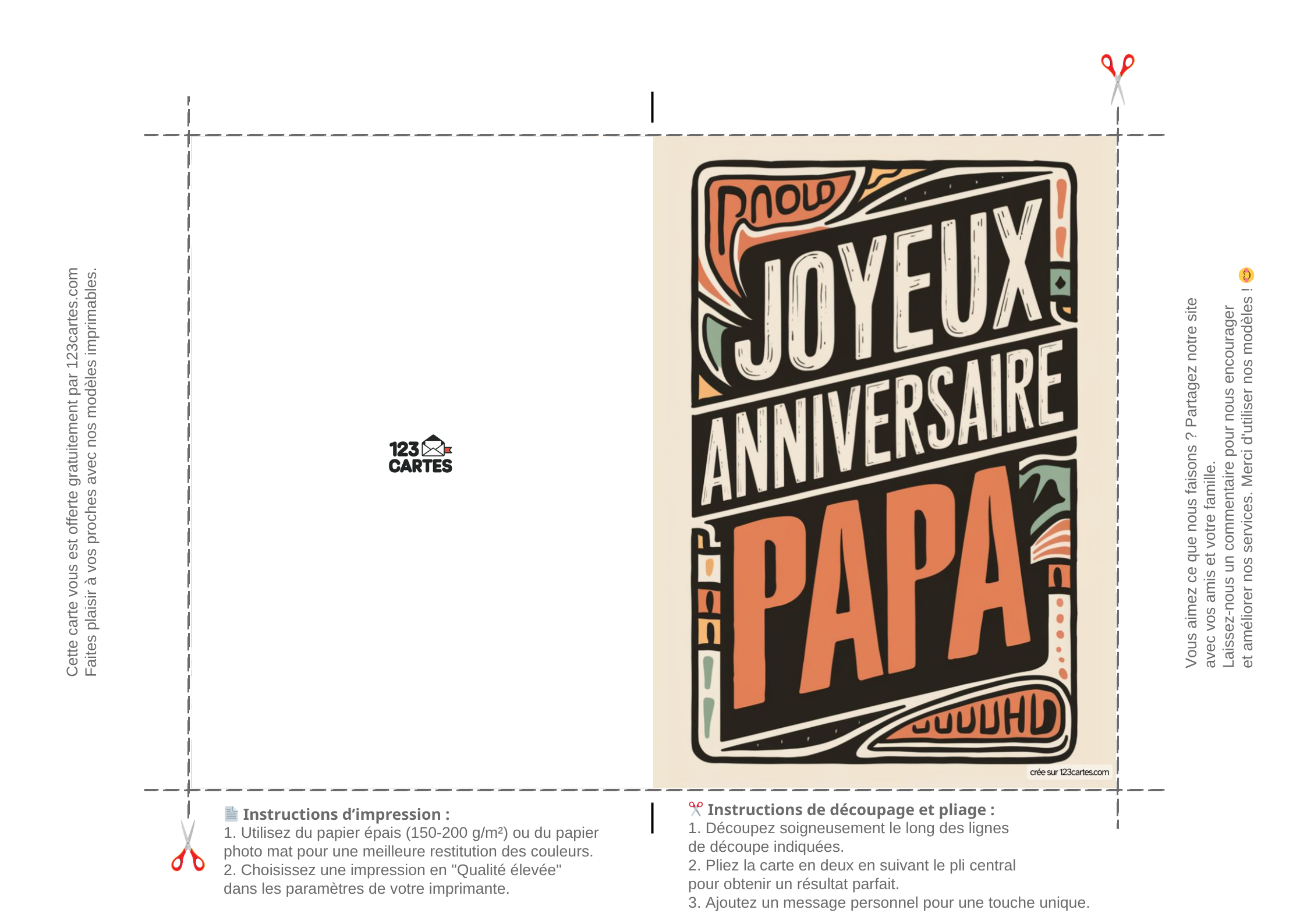 Bon, soyons honnêtes : courir à la papeterie la veille de l'anniversaire de papa en espérant trouver LA carte parfaite, c'est souvent mission impossible. Soit elles sont trop cucul, soit trop impersonnelles, soit carrément hors de prix pour un morceau de carton plié en deux. Avec une carte à imprimer, vous avez un contrôle total sur le résultat final.