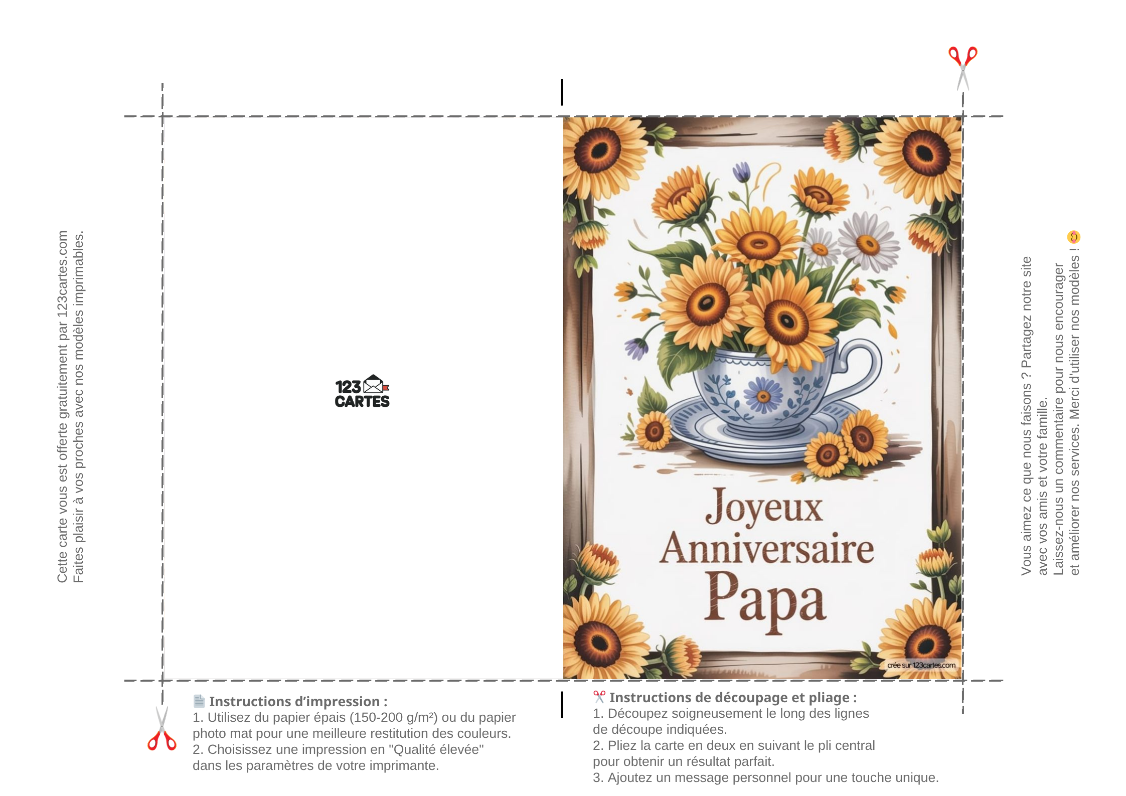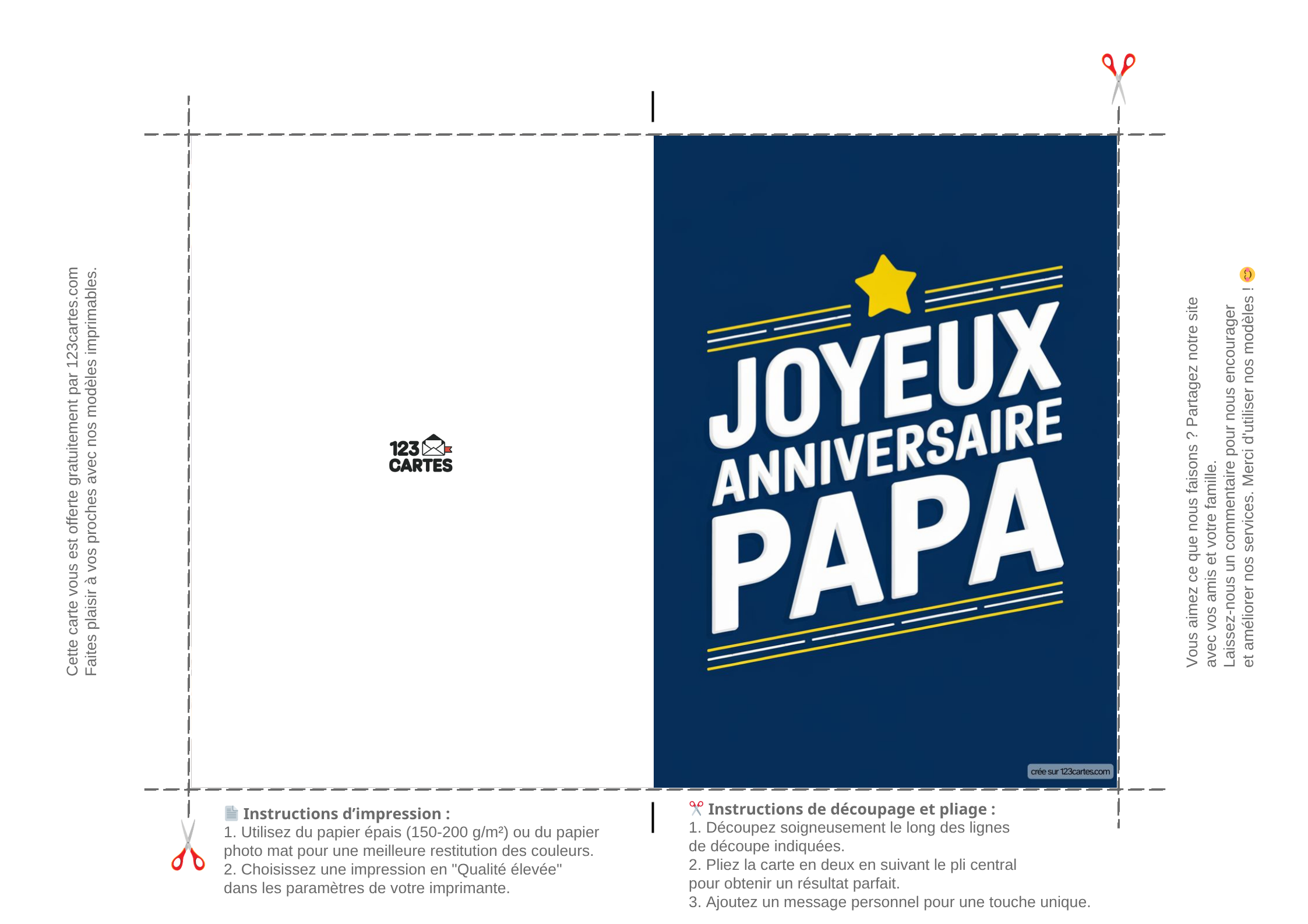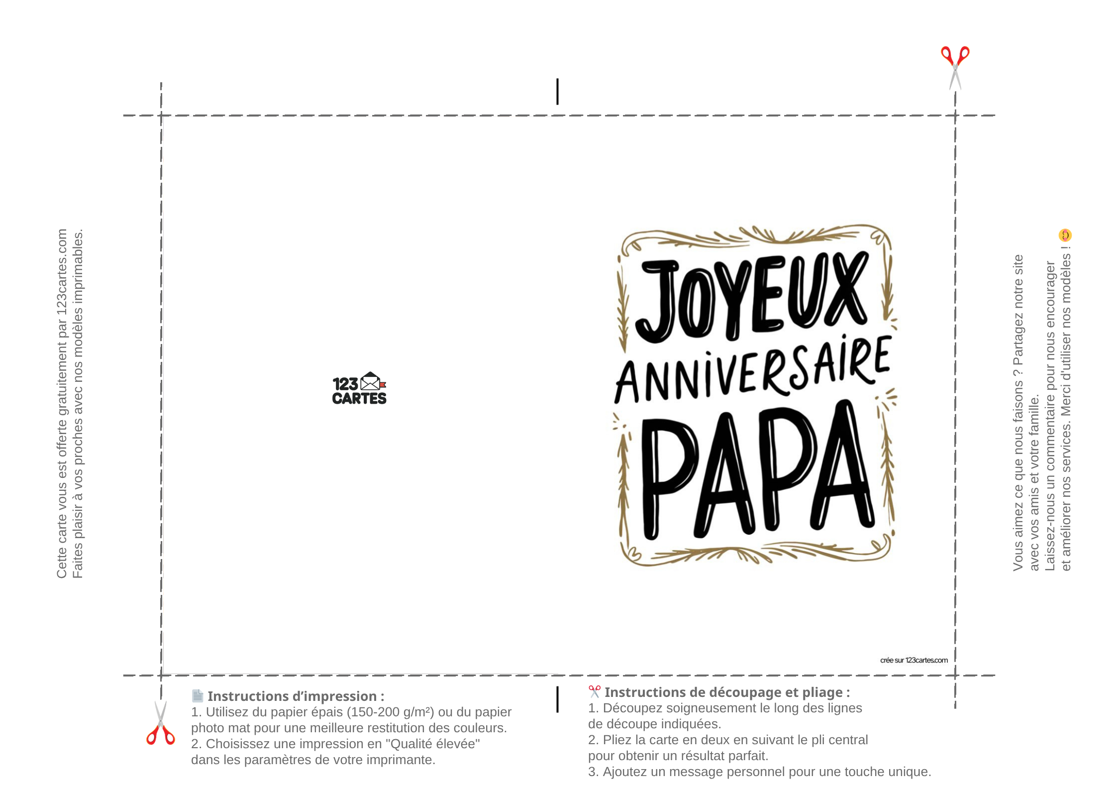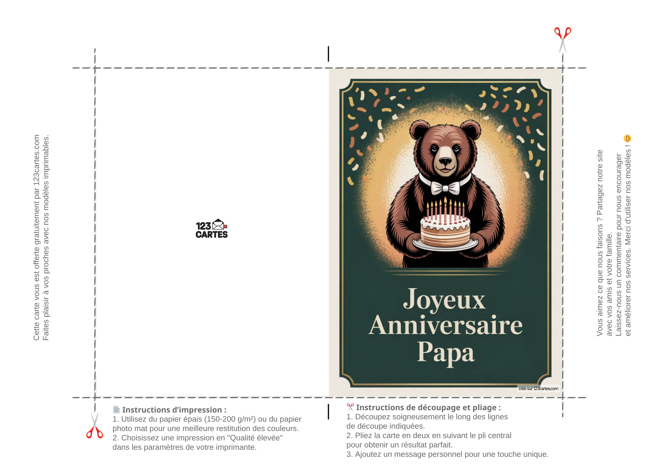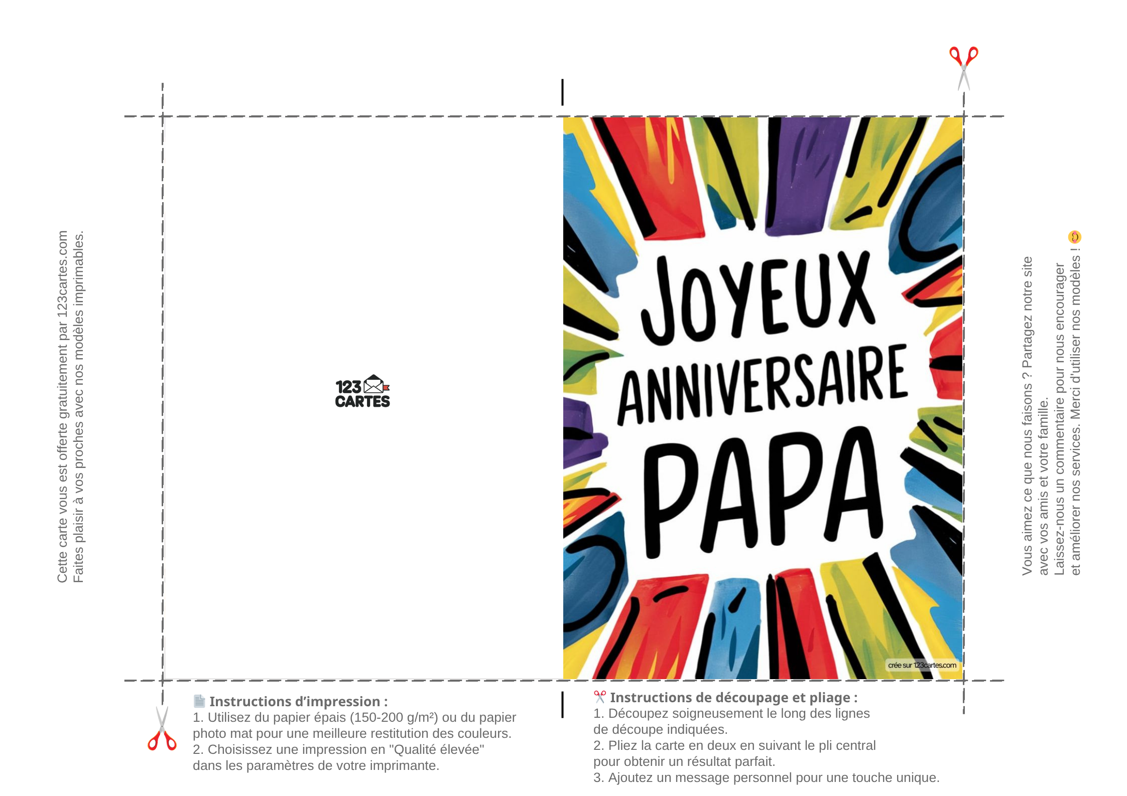 Bon, soyons honnêtes : courir à la papeterie la veille de l'anniversaire de papa en espérant trouver LA carte parfaite, c'est souvent mission impossible. Soit elles sont trop cucul, soit trop impersonnelles, soit carrément hors de prix pour un morceau de carton plié en deux. Avec une carte à imprimer, vous avez un contrôle total sur le résultat final.