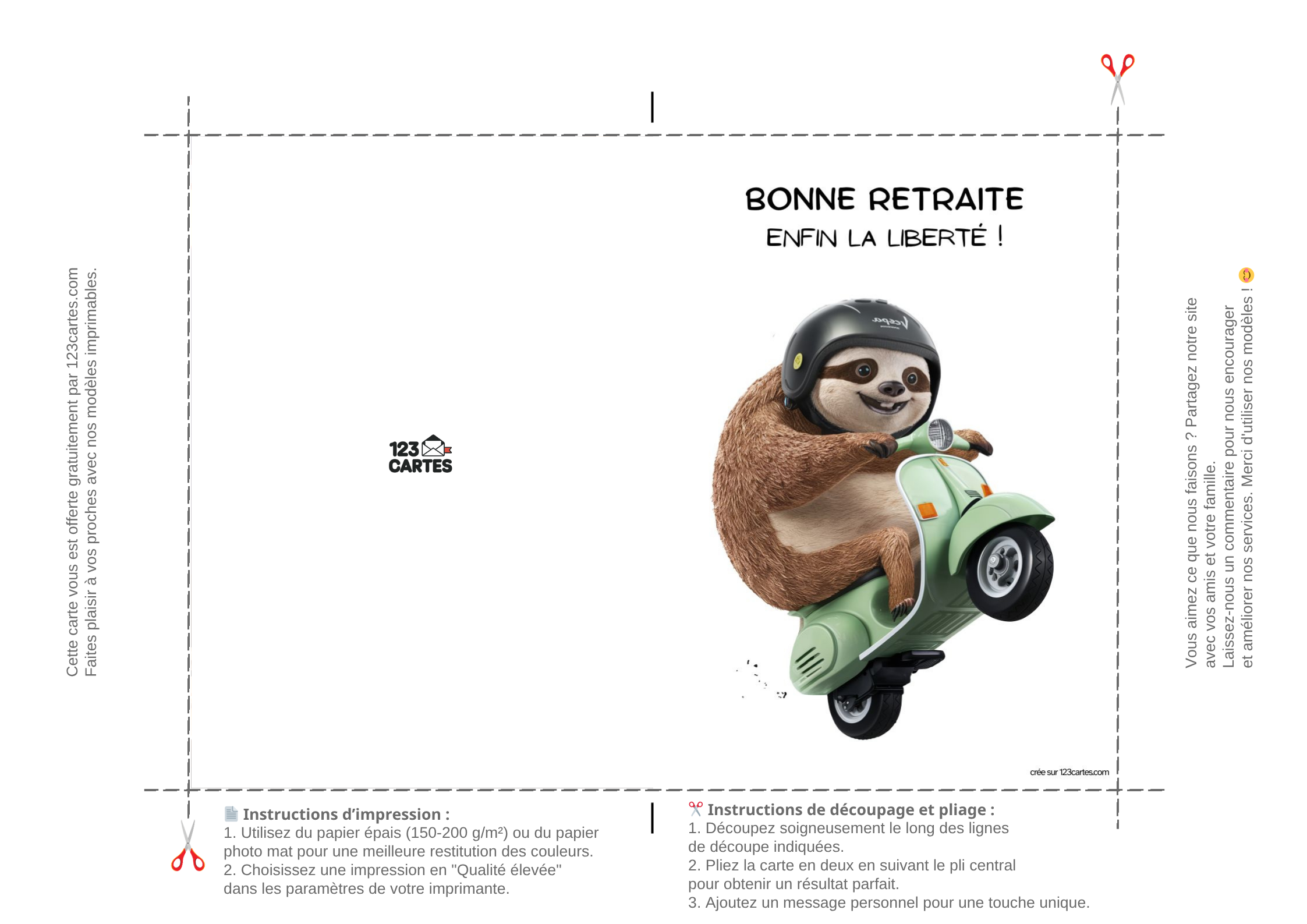Une fois imprimée, votre carte peut être décorée avec plein de petites attentions. Pourquoi ne pas coller une photo d'équipe de l'année dernière ? Ou ajouter des stickers, des petits dessins faits main, des confettis ? Si votre collègue a des passions particulières qu'il va enfin pouvoir développer (jardinage, voyages, pêche...), vous pouvez intégrer ces éléments dans la décoration.