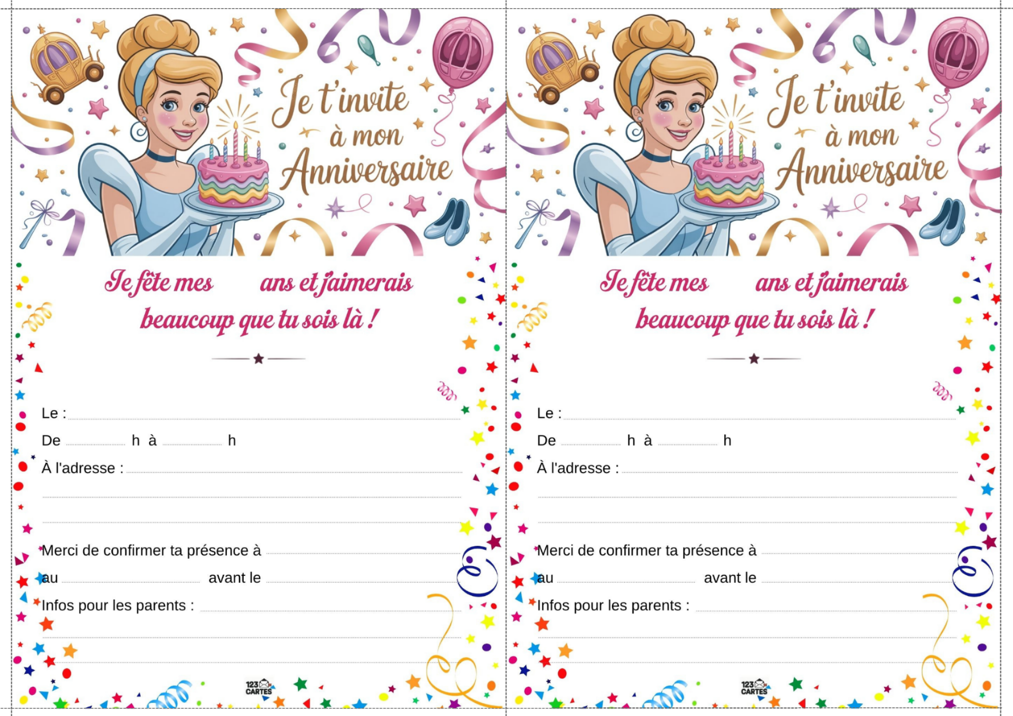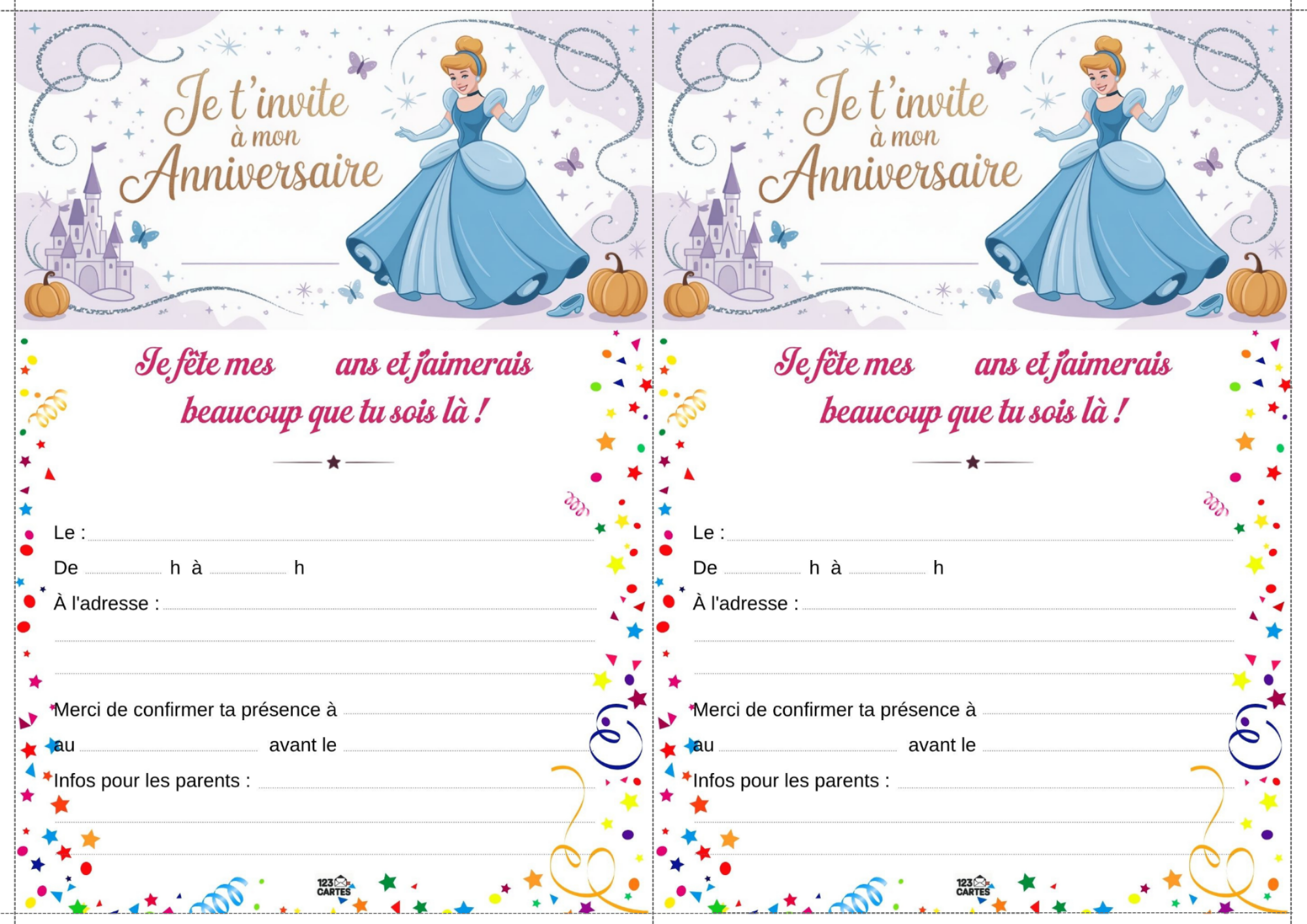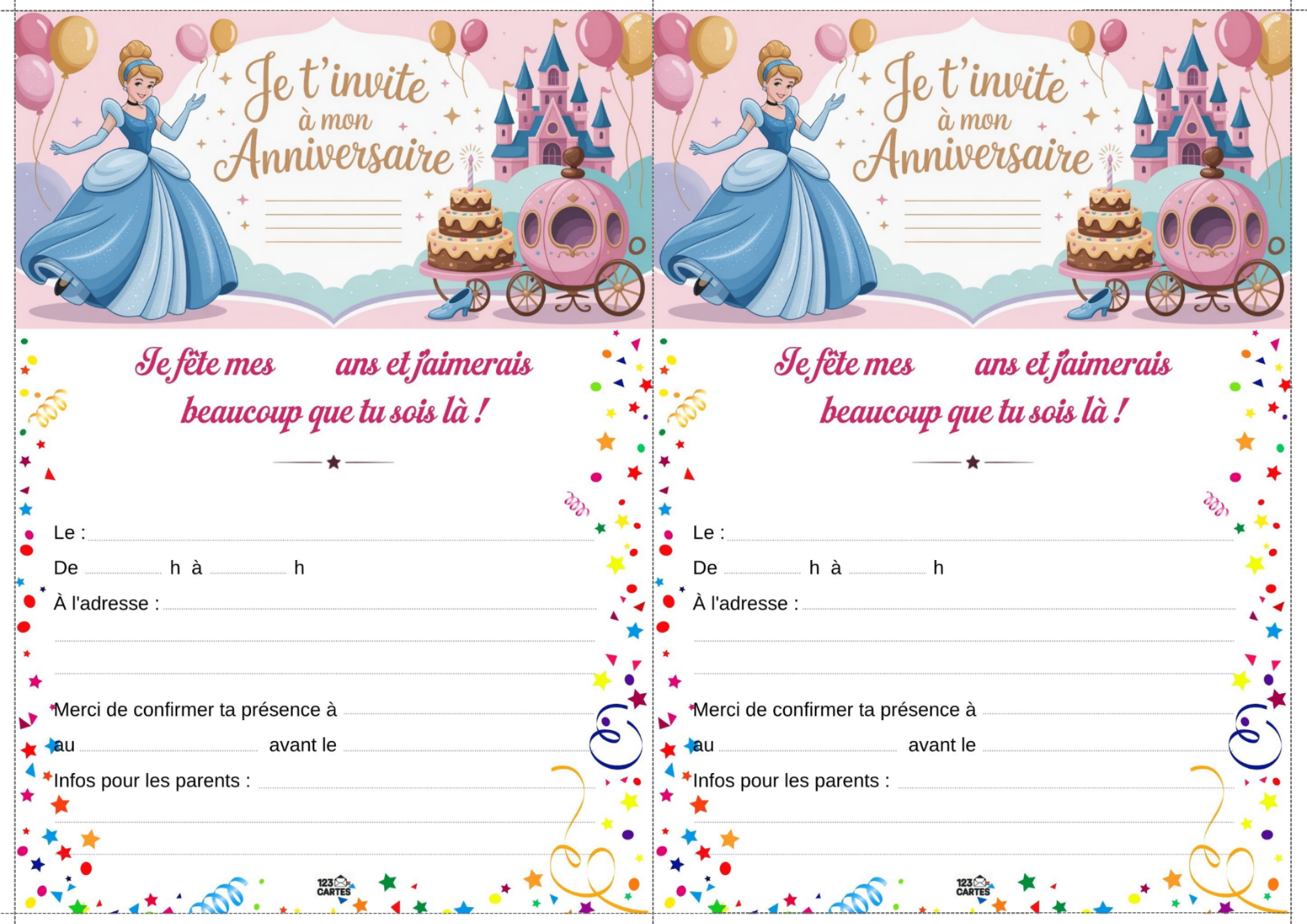 👑 Invitation anniversaire Cendrillon : une fête enchantée pour les petites princesses