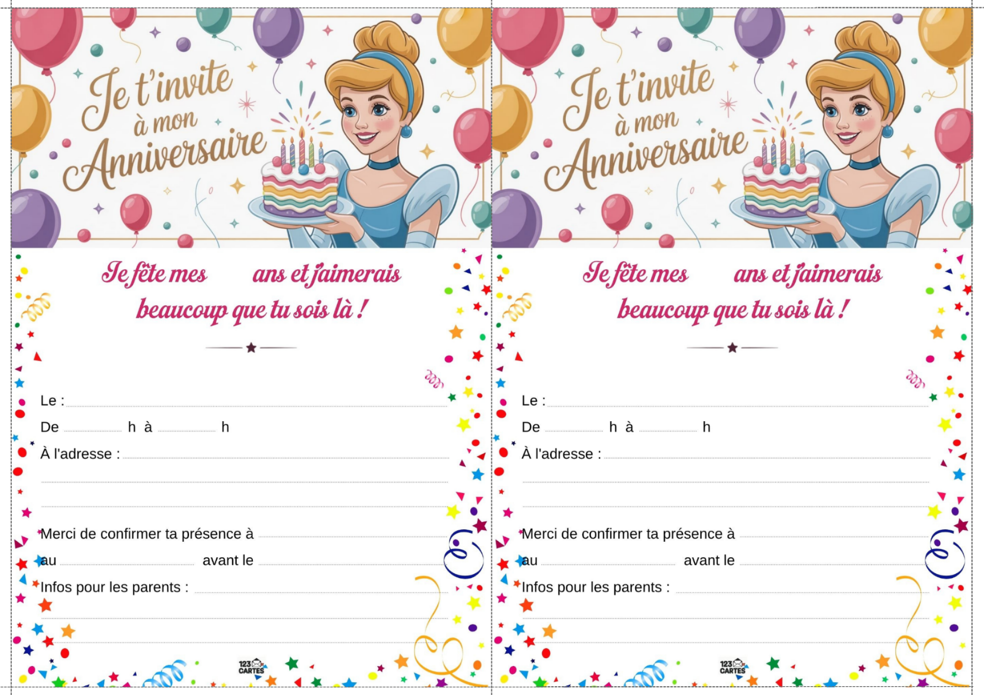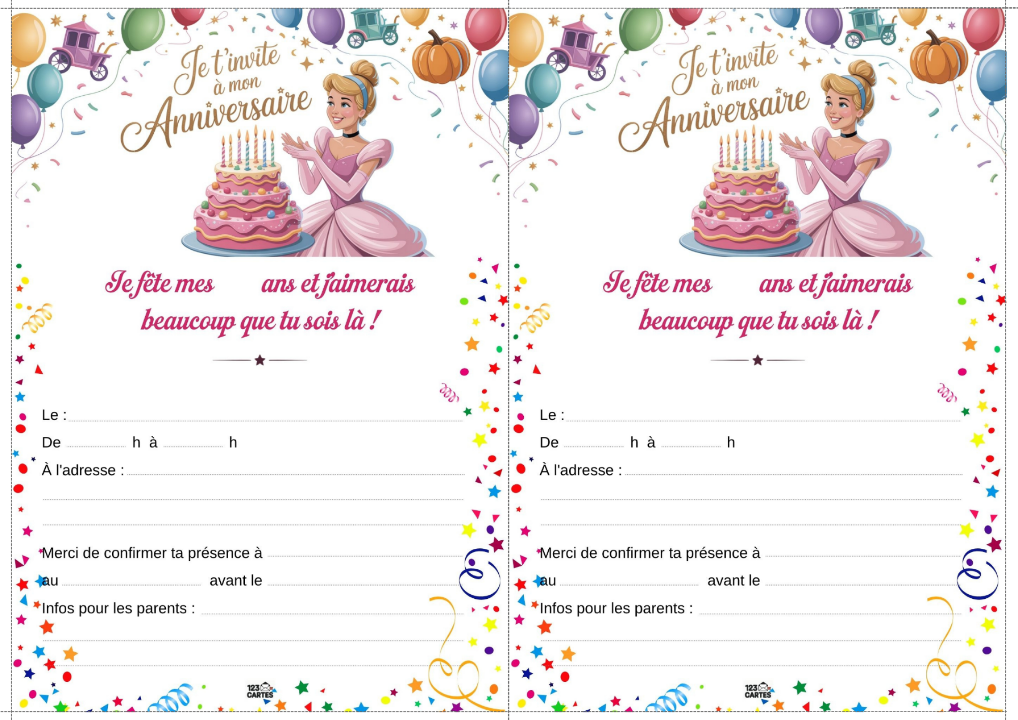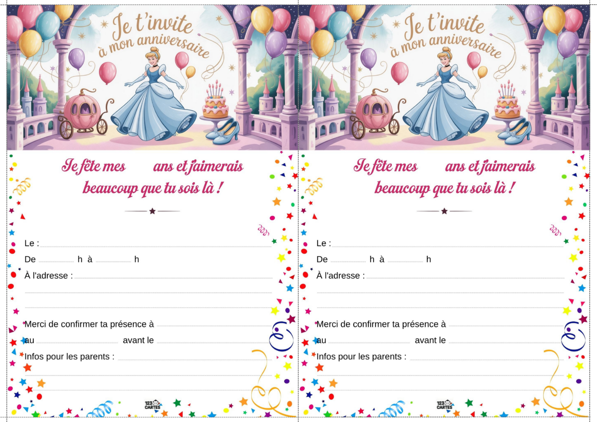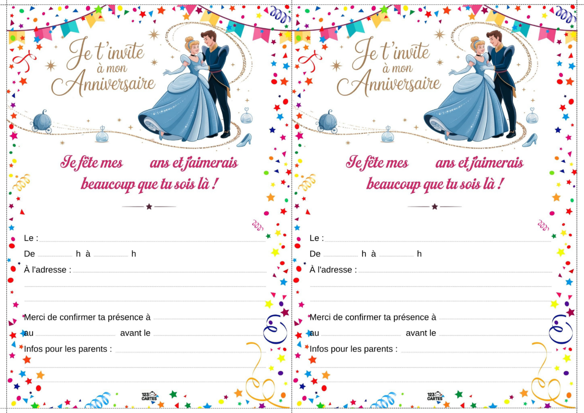 👑 Invitation anniversaire Cendrillon : une fête enchantée pour les petites princesses