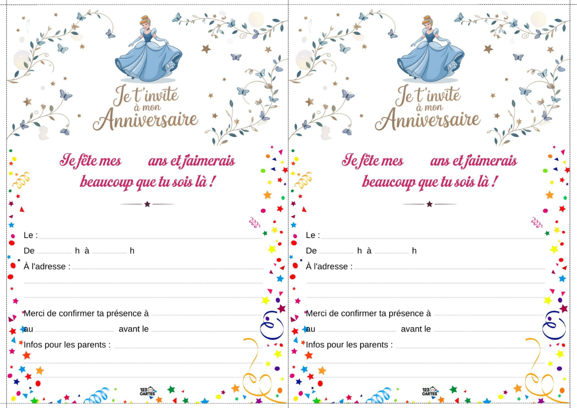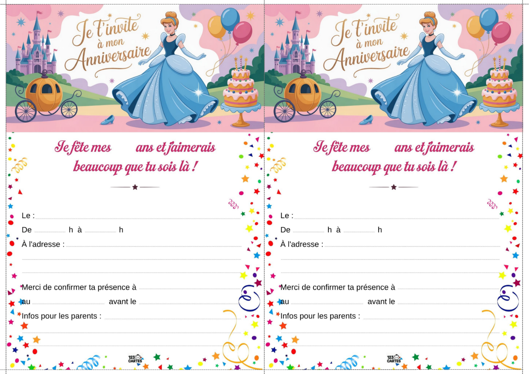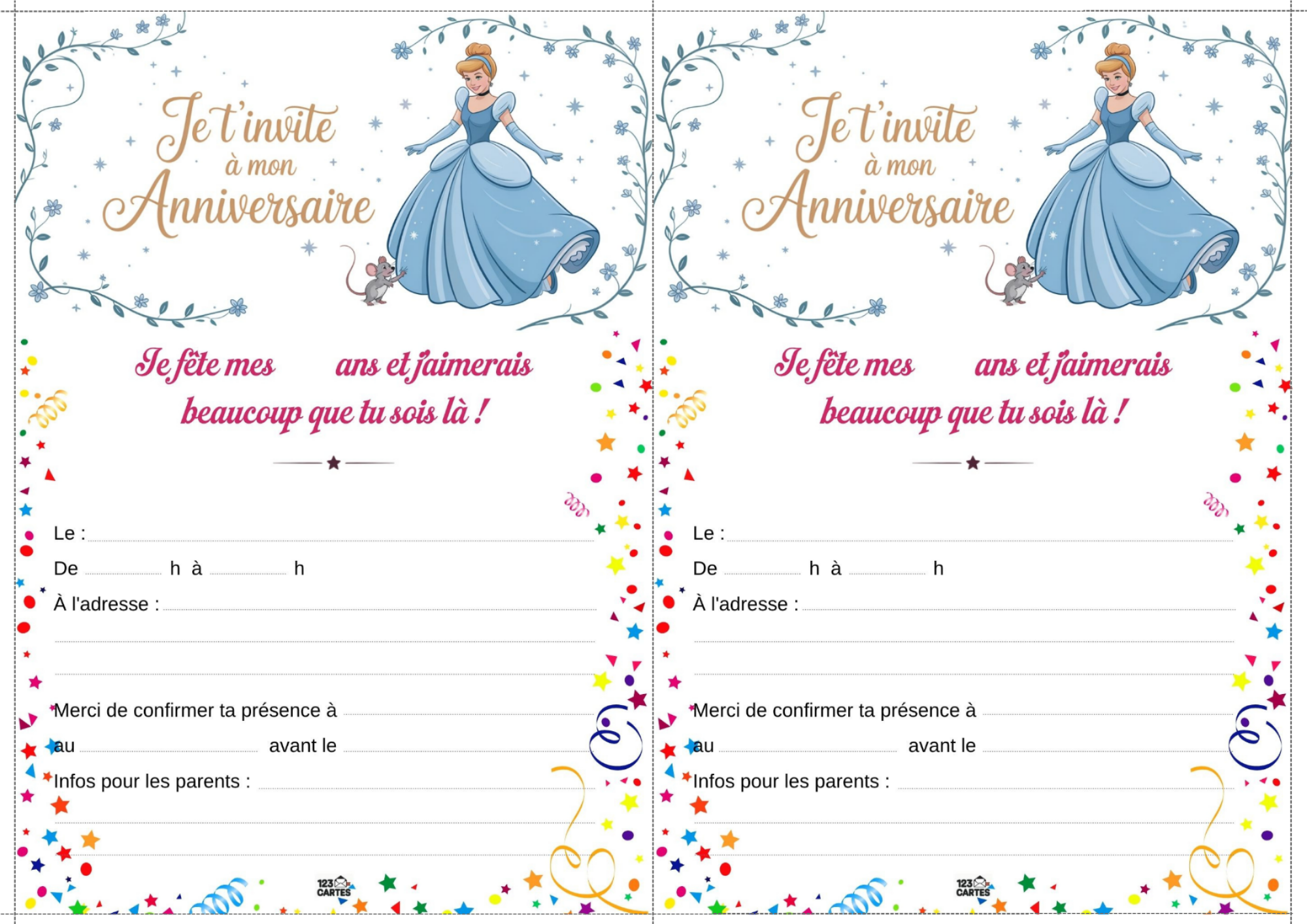 Vous cherchez une idée magique pour célébrer l’anniversaire de votre enfant ? Le thème Cendrillon est un classique indémodable qui fait rêver les petites filles depuis des générations. Entre la robe bleue scintillante, le carrosse doré et les pantoufles de verre, tout est réuni pour une journée féerique. Et pour commencer cette aventure royale, rien de tel qu’une invitation gratuite à imprimer, inspirée de l’univers de Cendrillon.