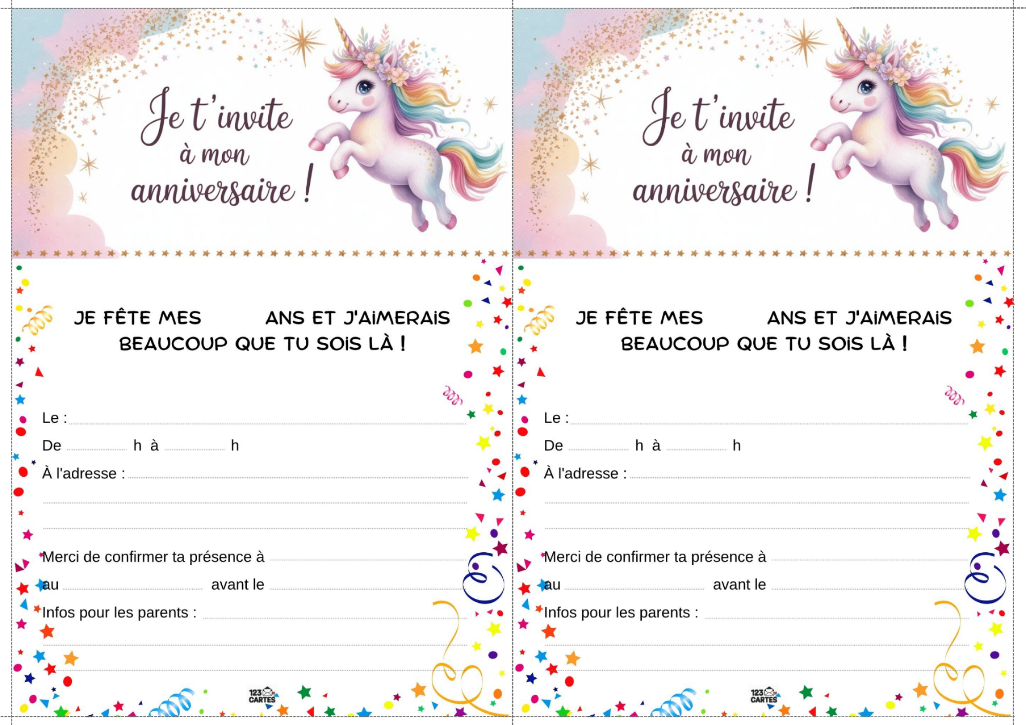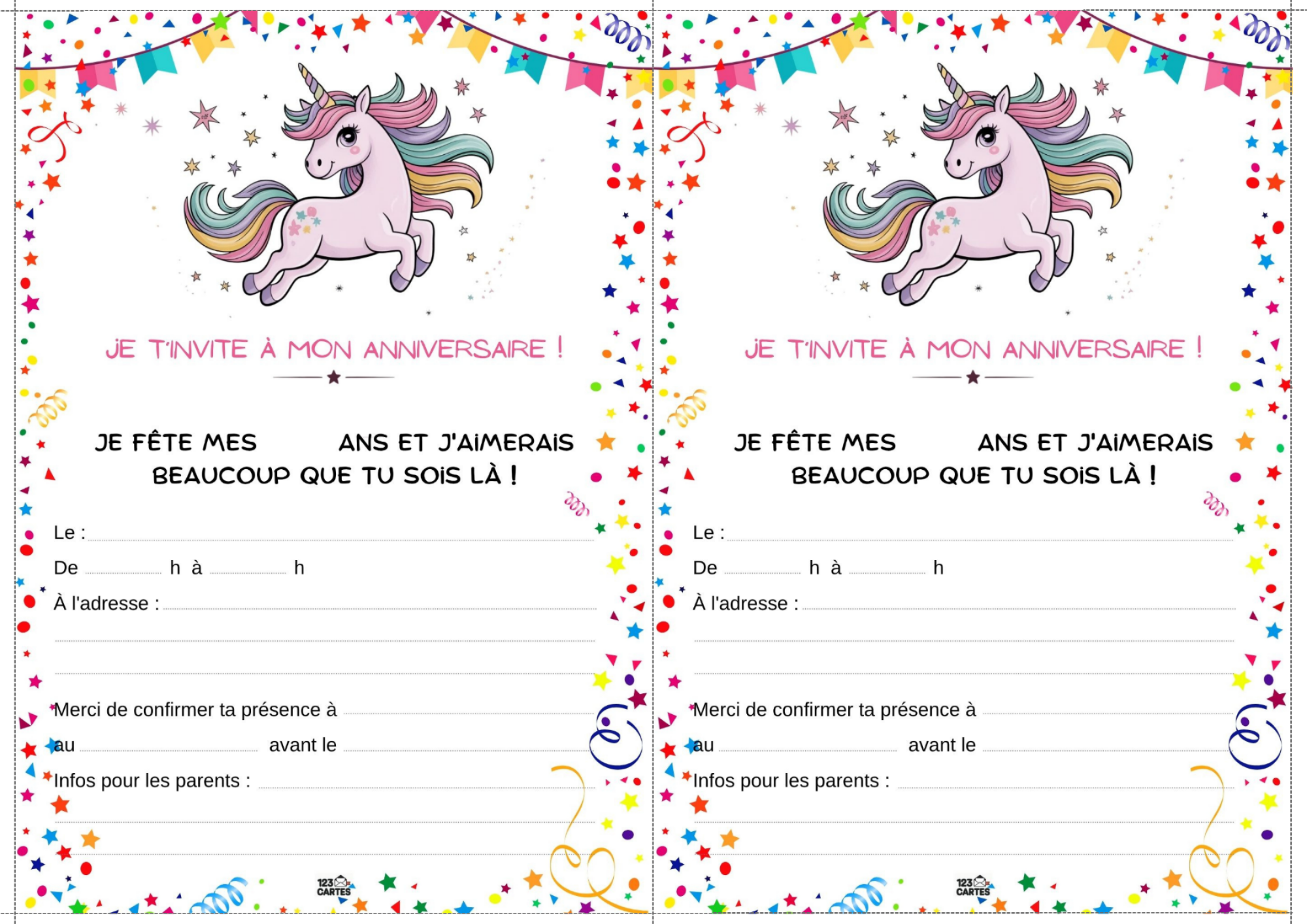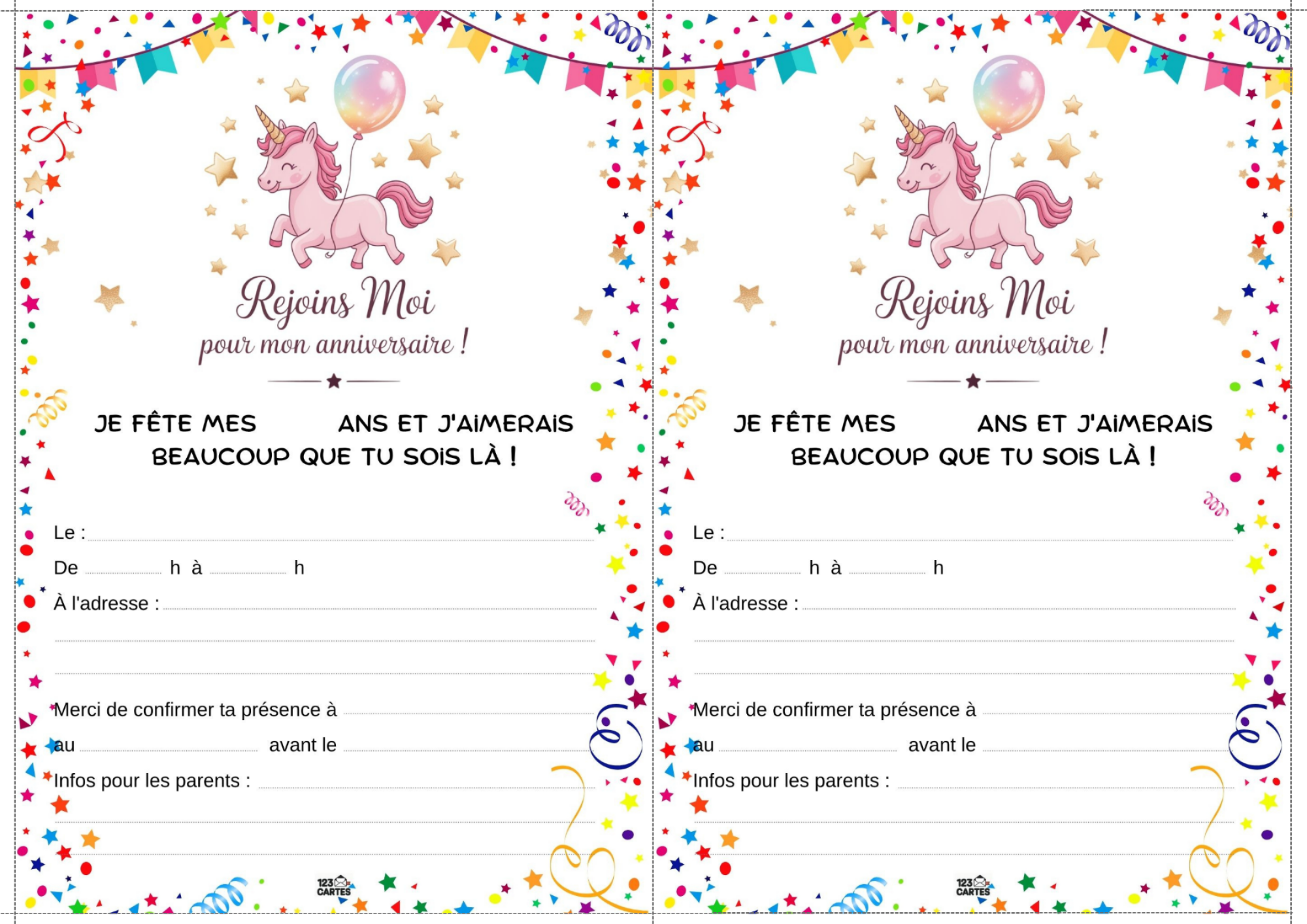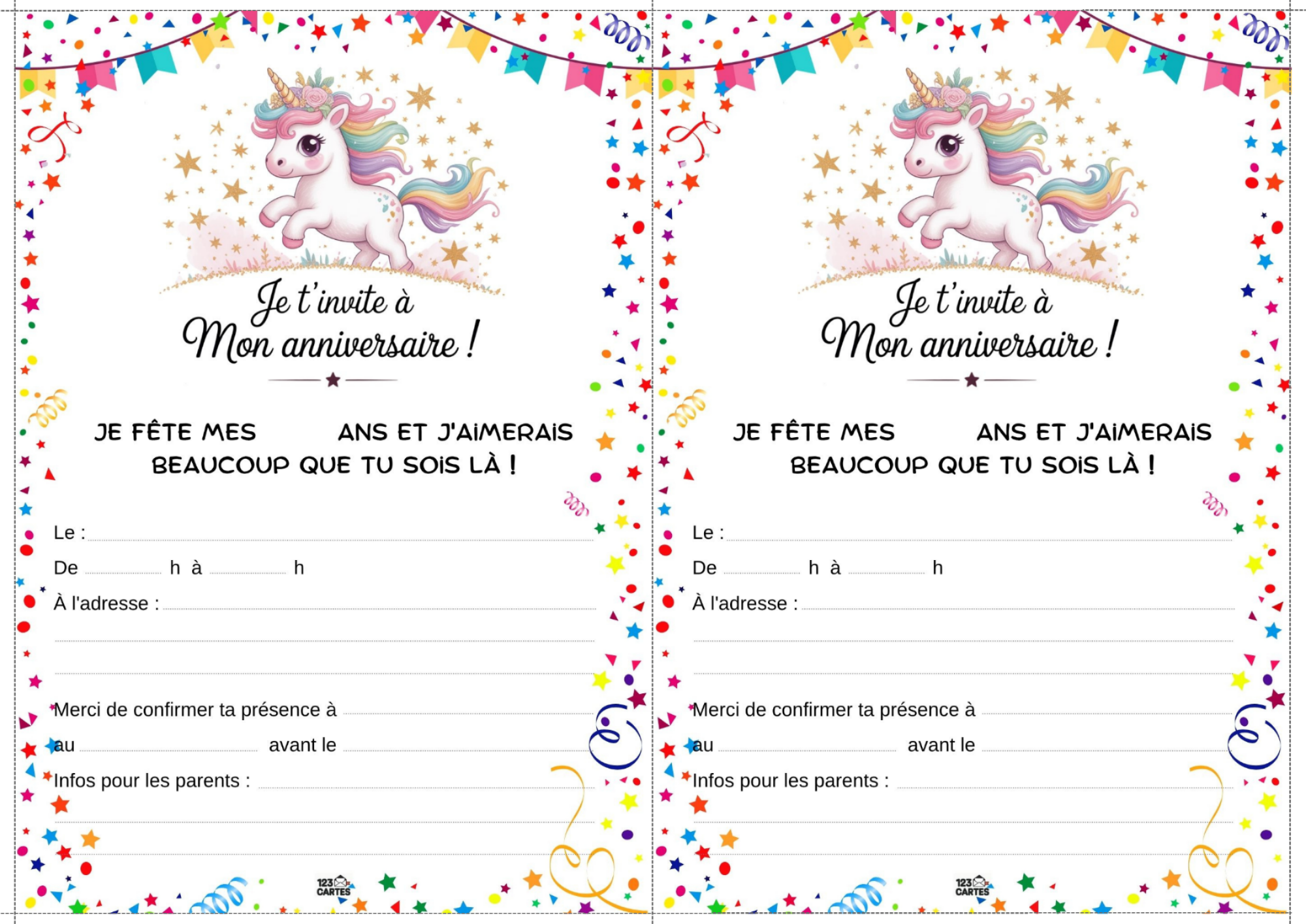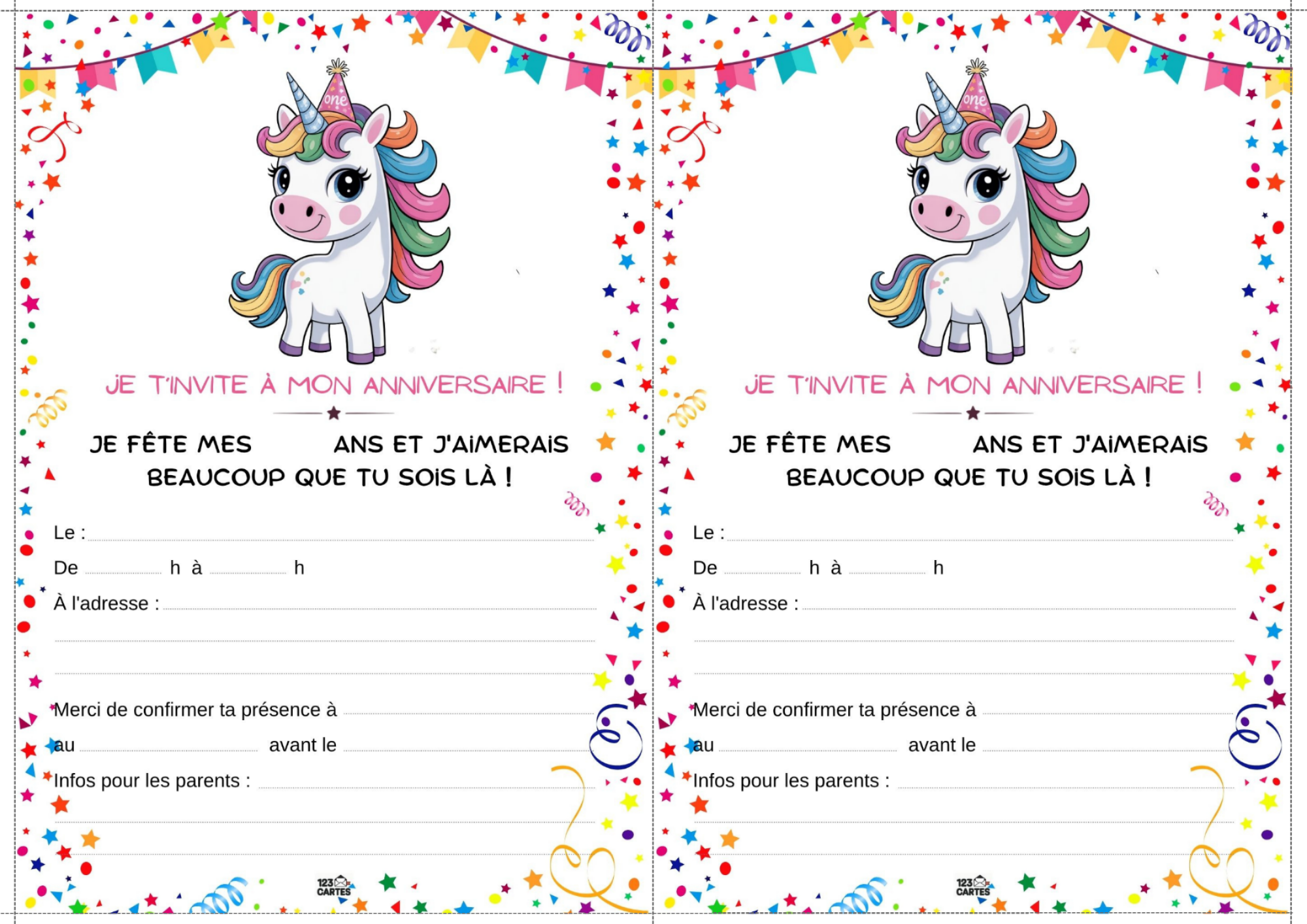 Colorée, magique et pleine de paillettes, la licorne est devenue l’un des thèmes d’anniversaire les plus populaires chez les enfants. Elle incarne la douceur, l’imaginaire et la joie, ce qui en fait une idée parfaite pour une fête pleine de tendresse et de fantaisie. Et pour lancer les festivités, notre invitation gratuite à imprimer sur le thème des licornes est le premier pas vers un monde enchanté.