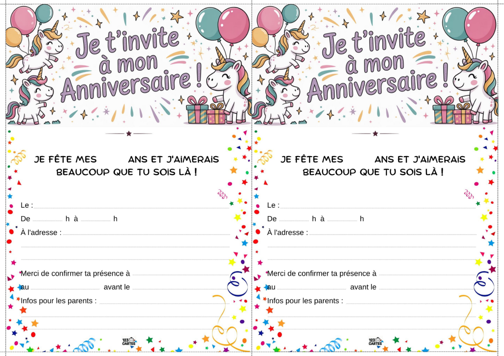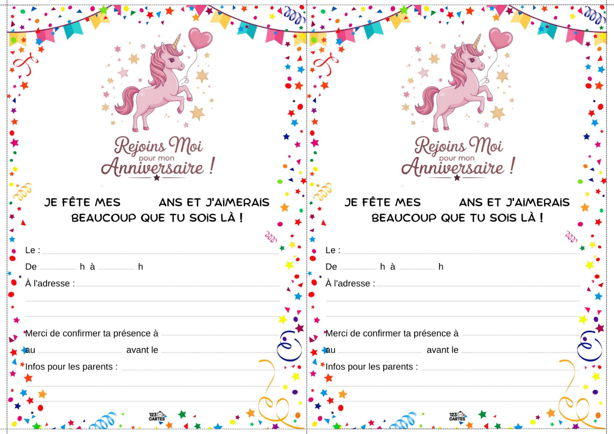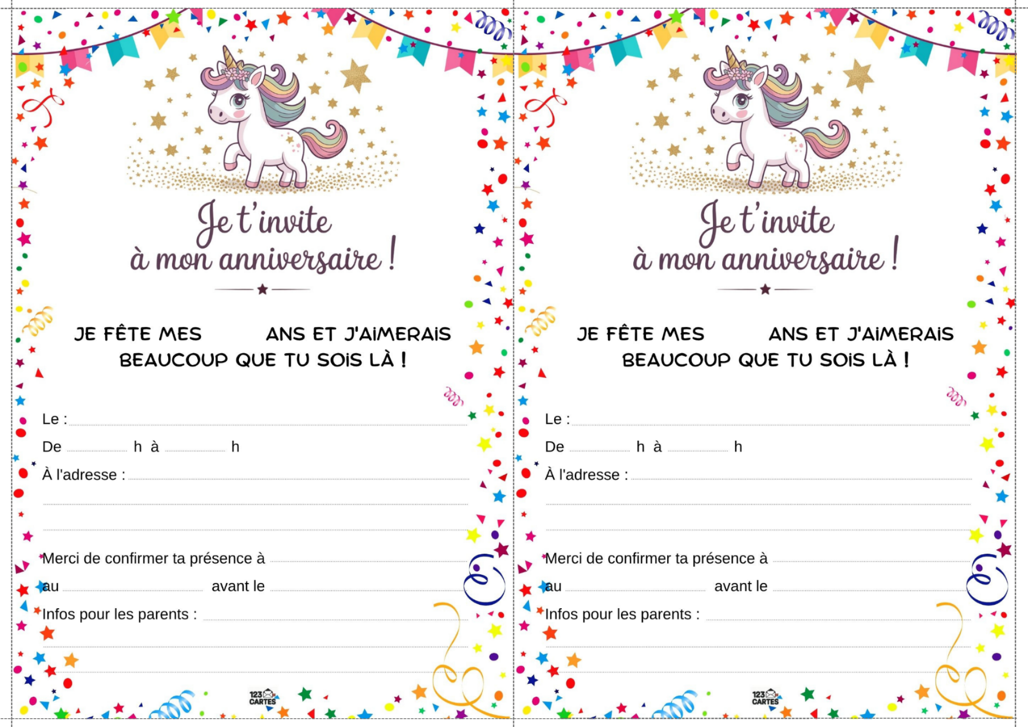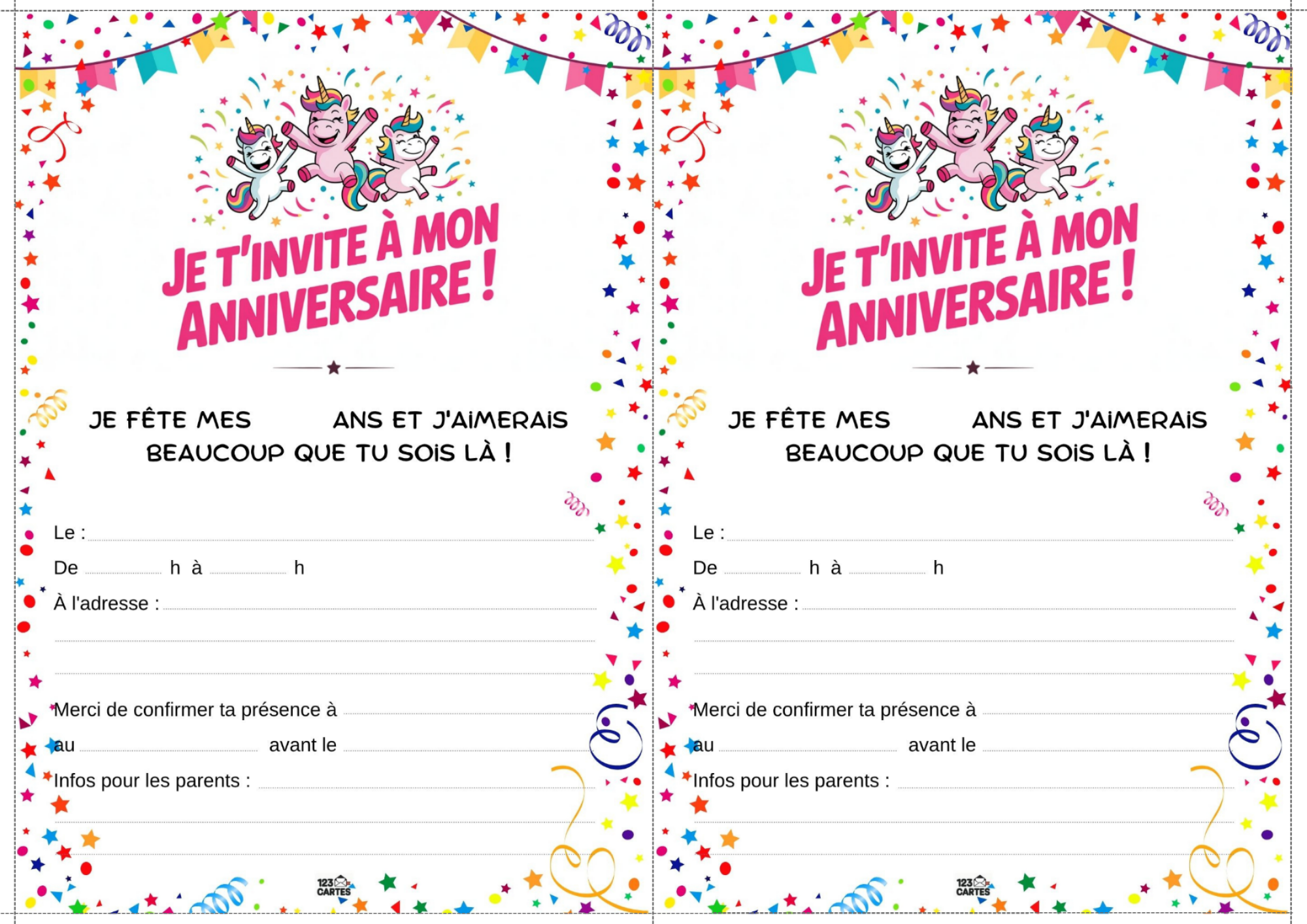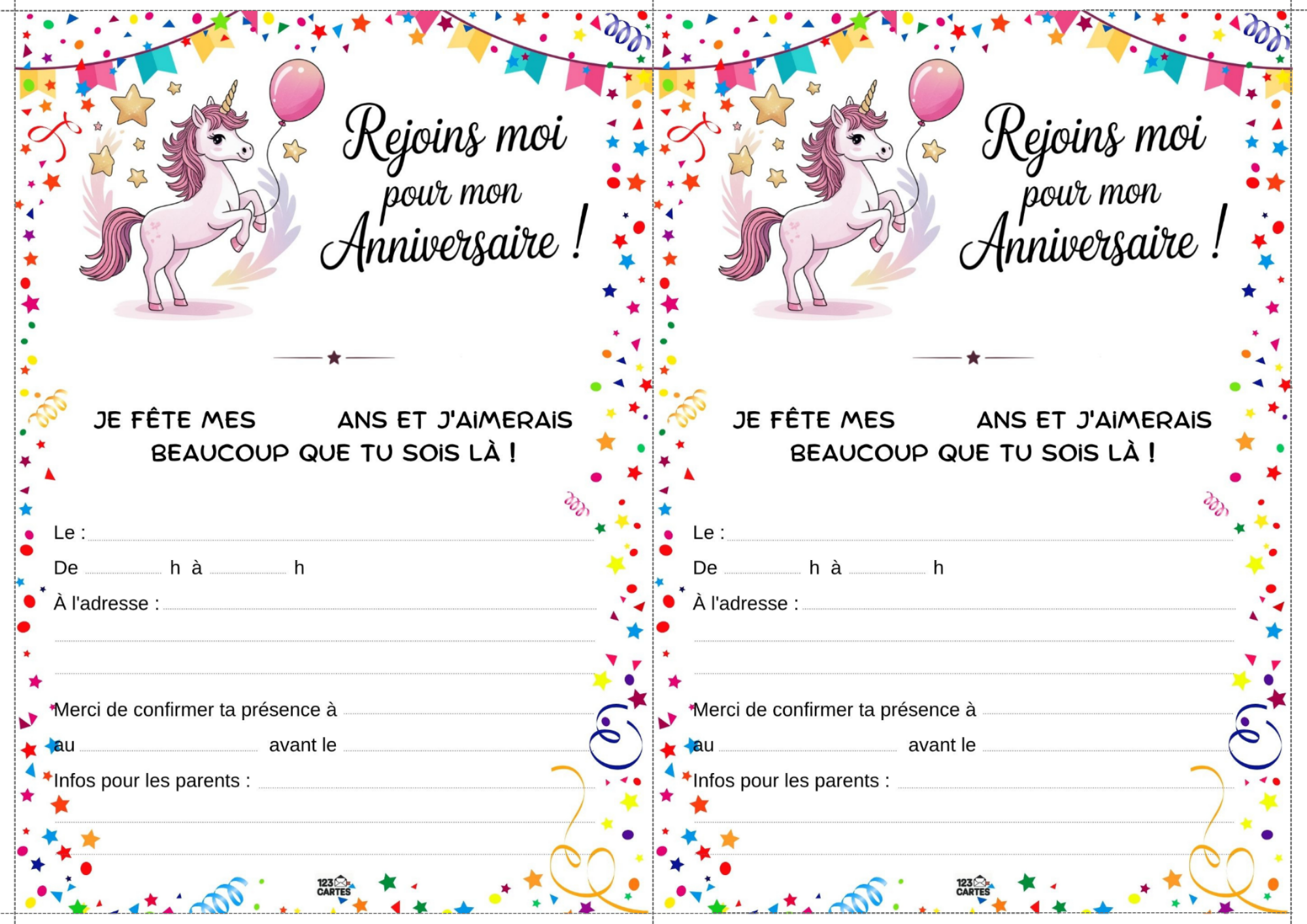Colorée, magique et pleine de paillettes, la licorne est devenue l’un des thèmes d’anniversaire les plus populaires chez les enfants. Elle incarne la douceur, l’imaginaire et la joie, ce qui en fait une idée parfaite pour une fête pleine de tendresse et de fantaisie. Et pour lancer les festivités, notre invitation gratuite à imprimer sur le thème des licornes est le premier pas vers un monde enchanté.