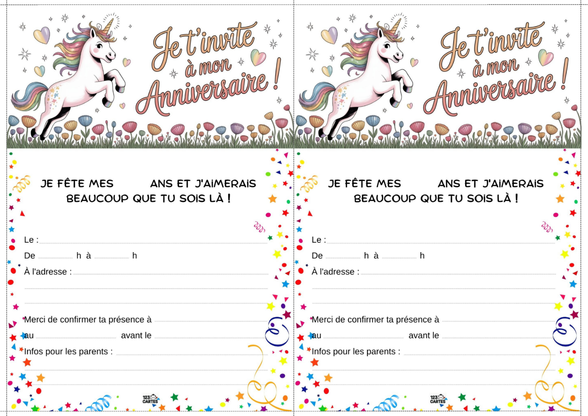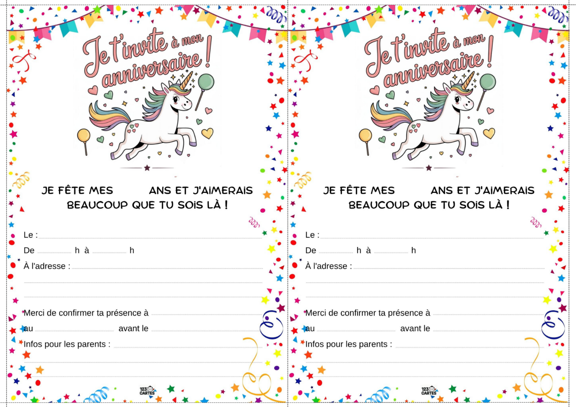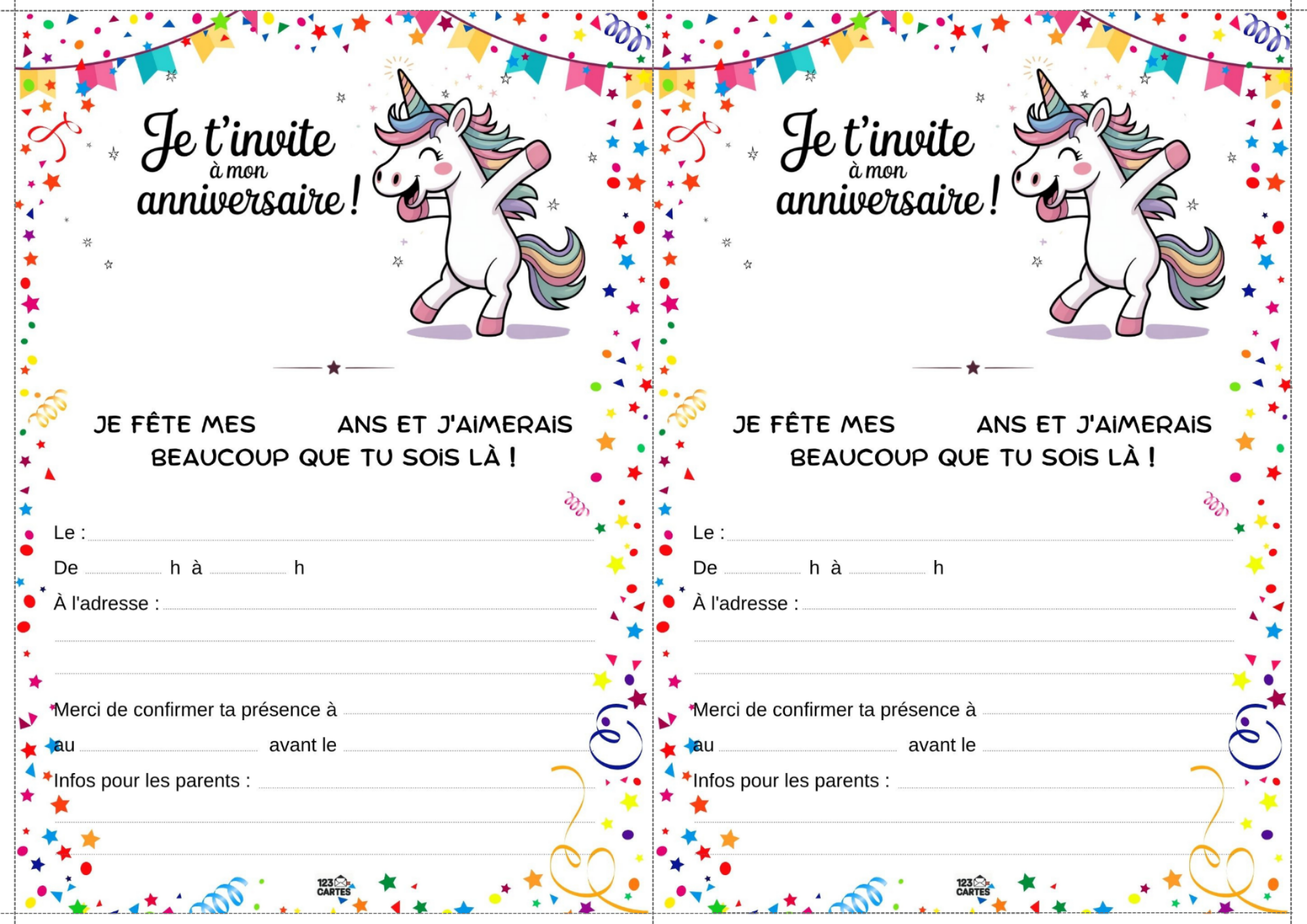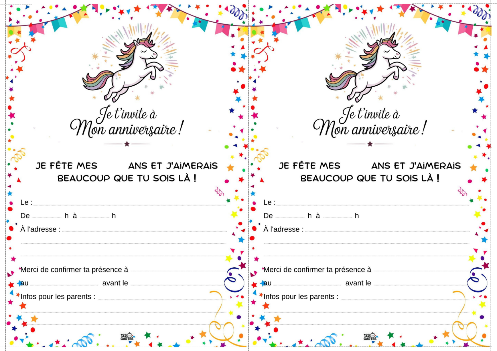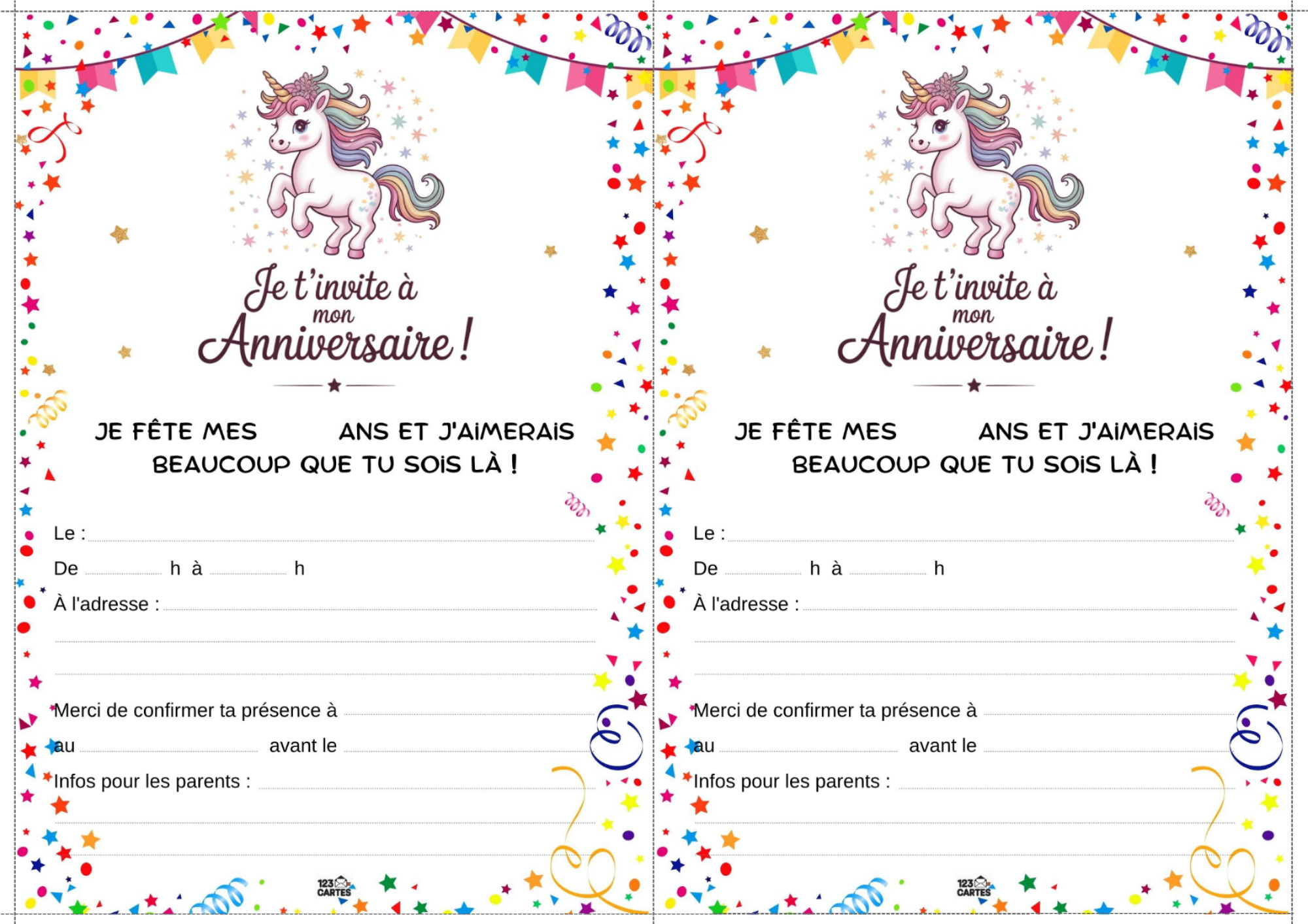 Colorée, magique et pleine de paillettes, la licorne est devenue l’un des thèmes d’anniversaire les plus populaires chez les enfants. Elle incarne la douceur, l’imaginaire et la joie, ce qui en fait une idée parfaite pour une fête pleine de tendresse et de fantaisie. Et pour lancer les festivités, notre invitation gratuite à imprimer sur le thème des licornes est le premier pas vers un monde enchanté.