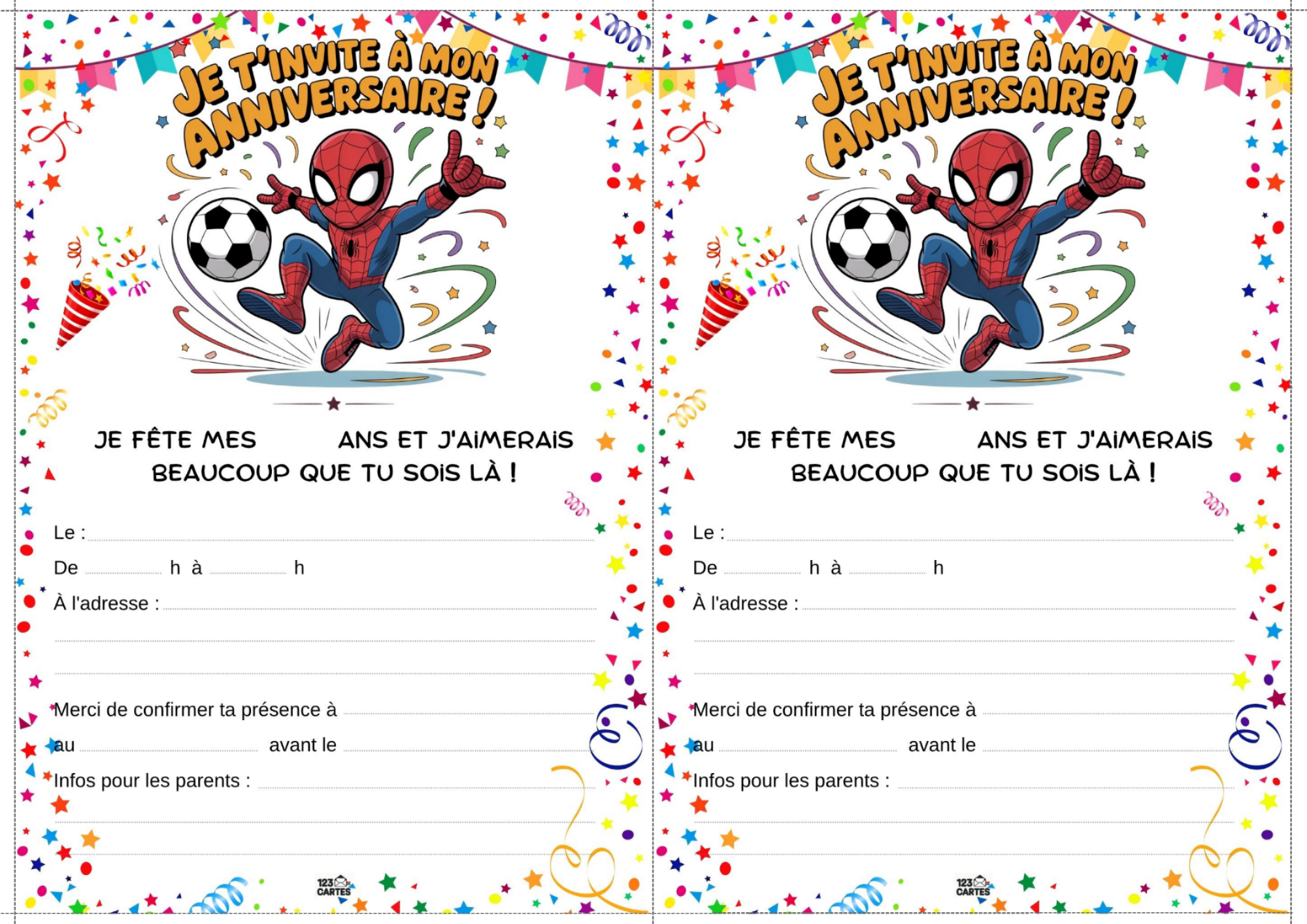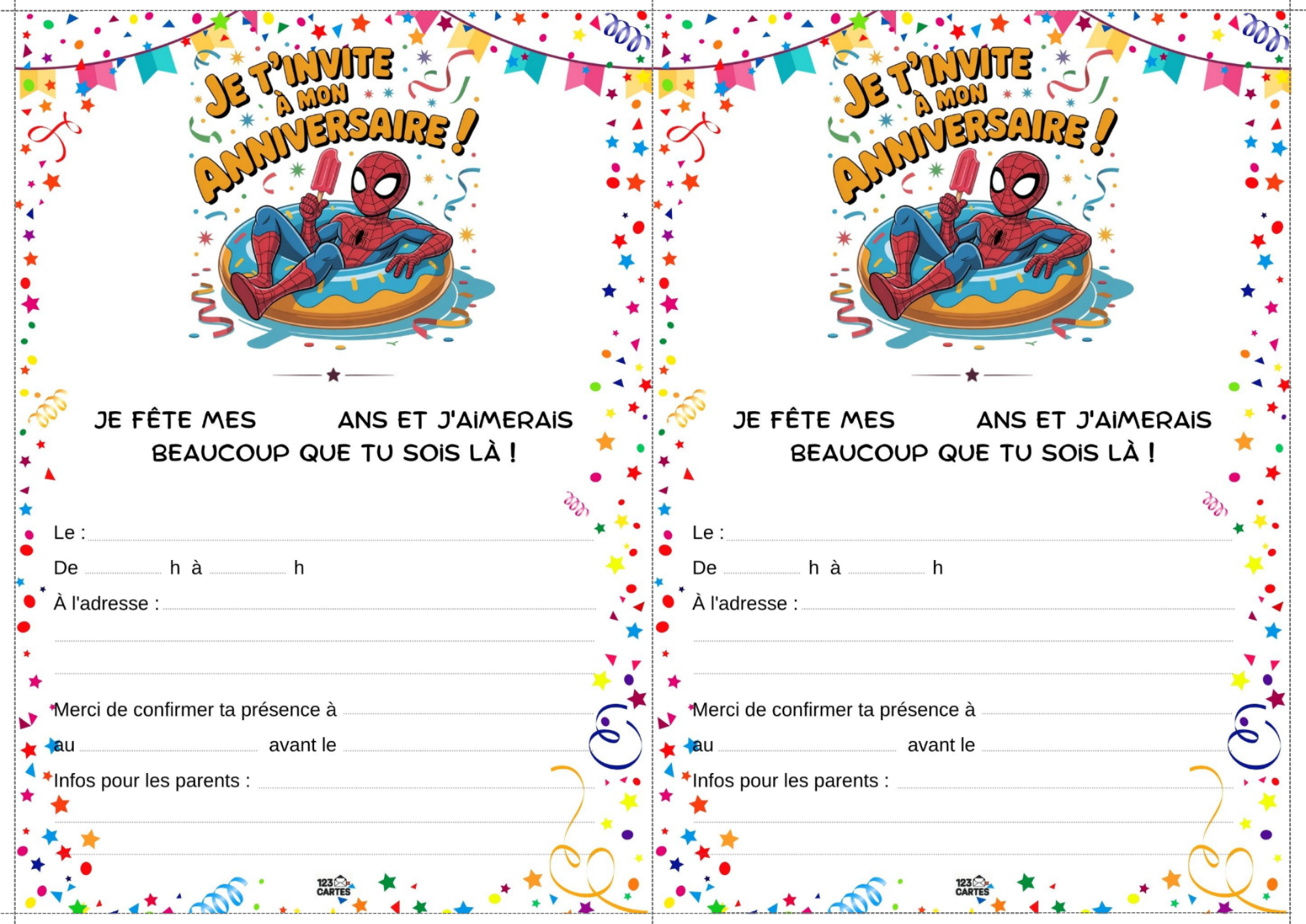 Grimper aux murs, lancer des toiles et sauver le quartier… voilà le quotidien rêvé de nombreux enfants fans de Spider-Man. Ce super-héros emblématique incarne le courage, l’agilité et l’humour, ce qui en fait un thème d’anniversaire parfait pour les petits aventuriers. Et pour donner le ton dès le départ, une invitation à imprimer sur le thème Spider-Man est le premier signal d’alerte d’une journée pleine de rebondissements.