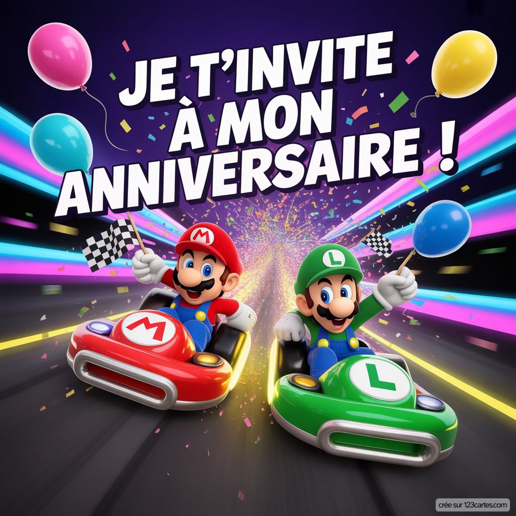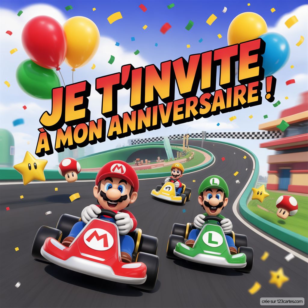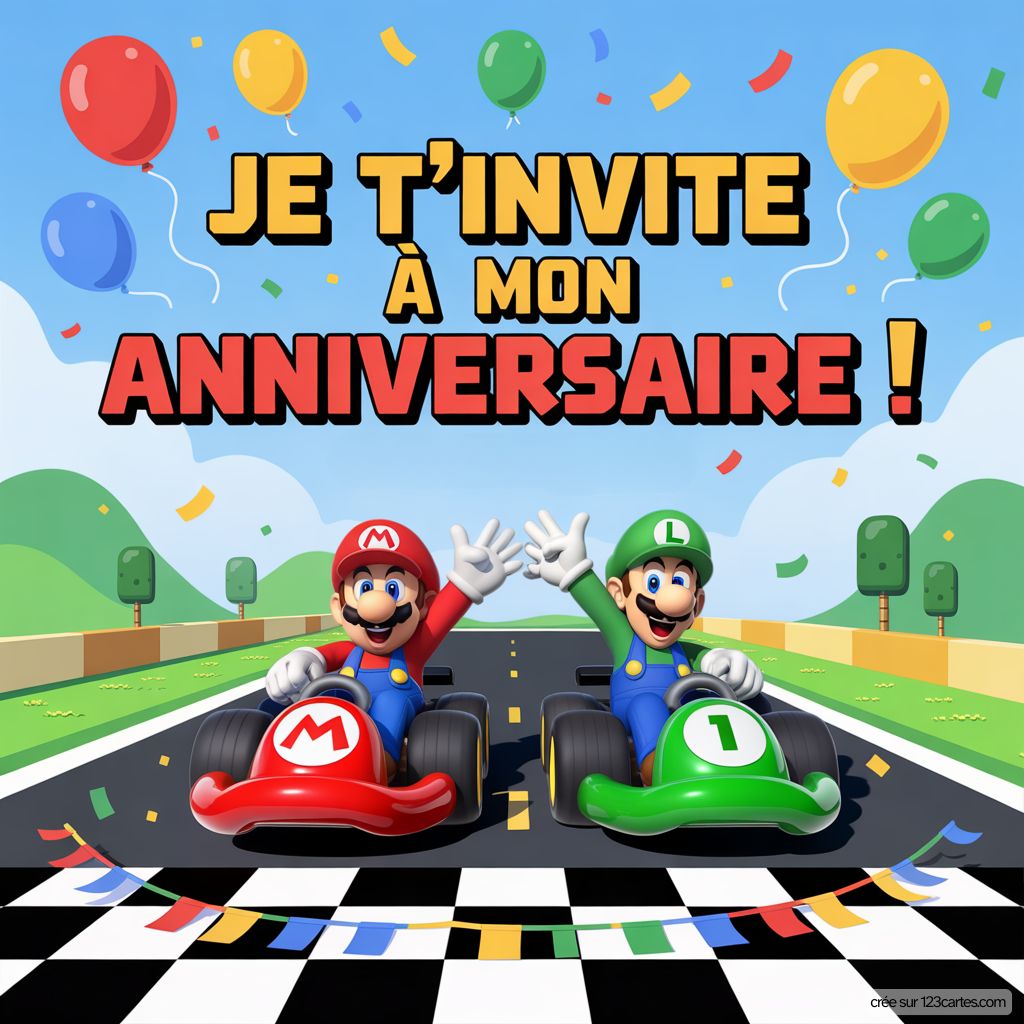 Votre petit plombier en herbe adore l'univers coloré de Mario ? Ce héros moustachu et ses aventures palpitantes passionnent toutes les générations ! Nos invitations virtuelles Mario vont transformer son anniversaire en véritable course de kart festive. Maintenant que vous avez choisi votre carte, découvrez comment rédiger l'invitation qui fera bondir de joie tous les petits joueurs du quartier !